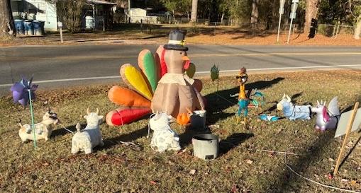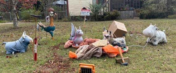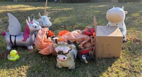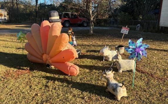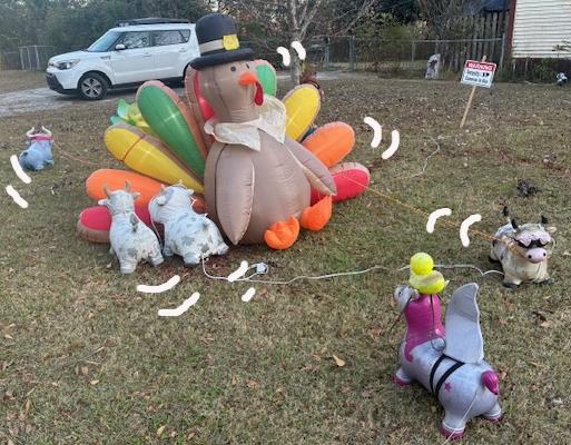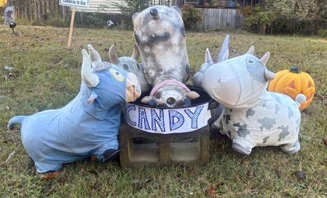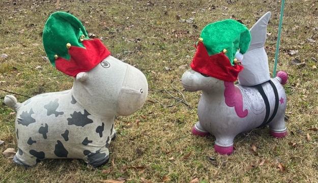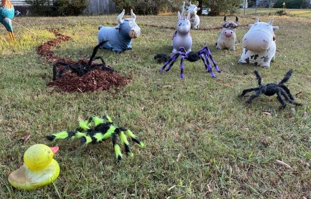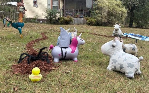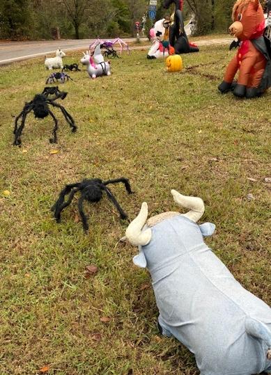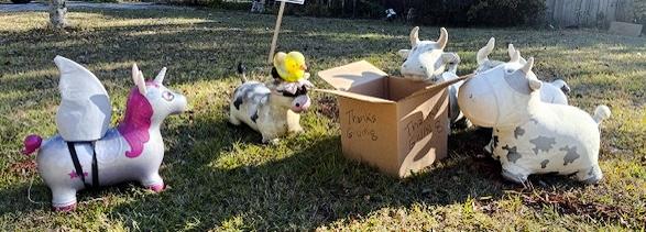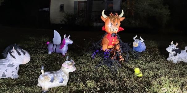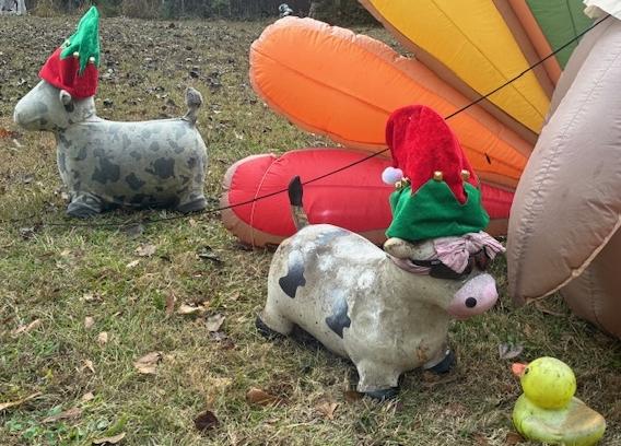 Folks have asked, "what has happened to those cute inflatable cows that you had in the yard?" The answer is simple: we wore them out. They were designed to be displayed a few weeks a year, then put away. Instead, we had them out EVERY day, for several years. The sun, weather, wind, and just plain wear and tear finally got the best of them. We tried to find replacement cows, but they were hard to find---AND they suddenly cost about 150 dollars each! We originally bought them when they were less than $40! So, we have a new herd of cows...a group that will most probably grow in number!